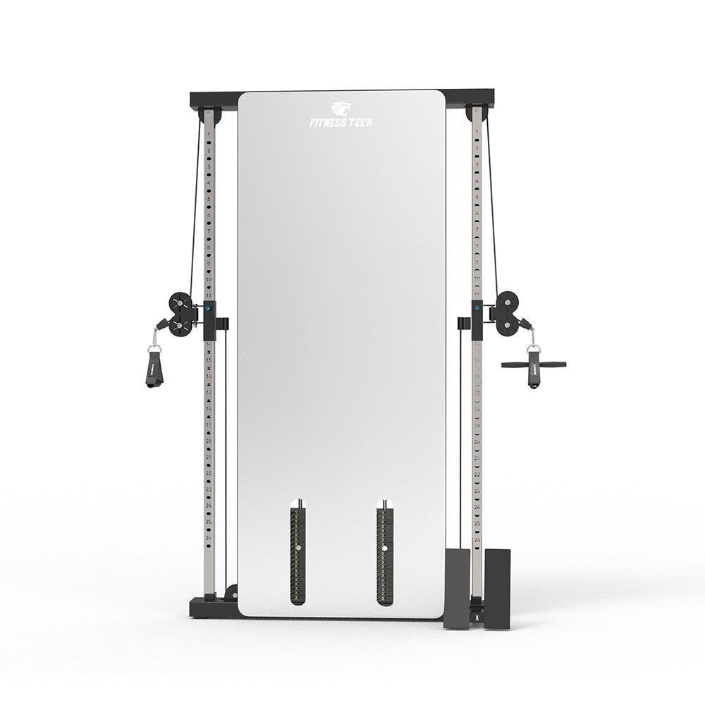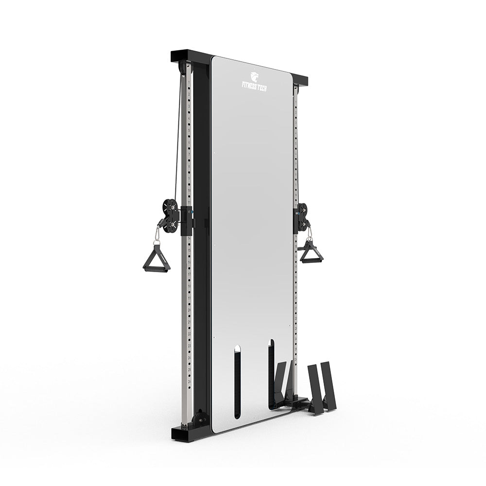 La Doble Polea de Pared con Efecto Espejo es la solución perfecta para entrenamientos funcionales de alto nivel en espacios reducidos. Su diseño compacto para montaje en pared, combinado con el elegante acabado en espejo, aporta un toque moderno y profesional mientras permite al usuario corregir su técnica en tiempo real. Gracias a sus 26 posiciones de altura y relación de cables 2:1, ofrece un movimiento suave, controlado y adaptable a todo tipo de ejercicios y usuarios.