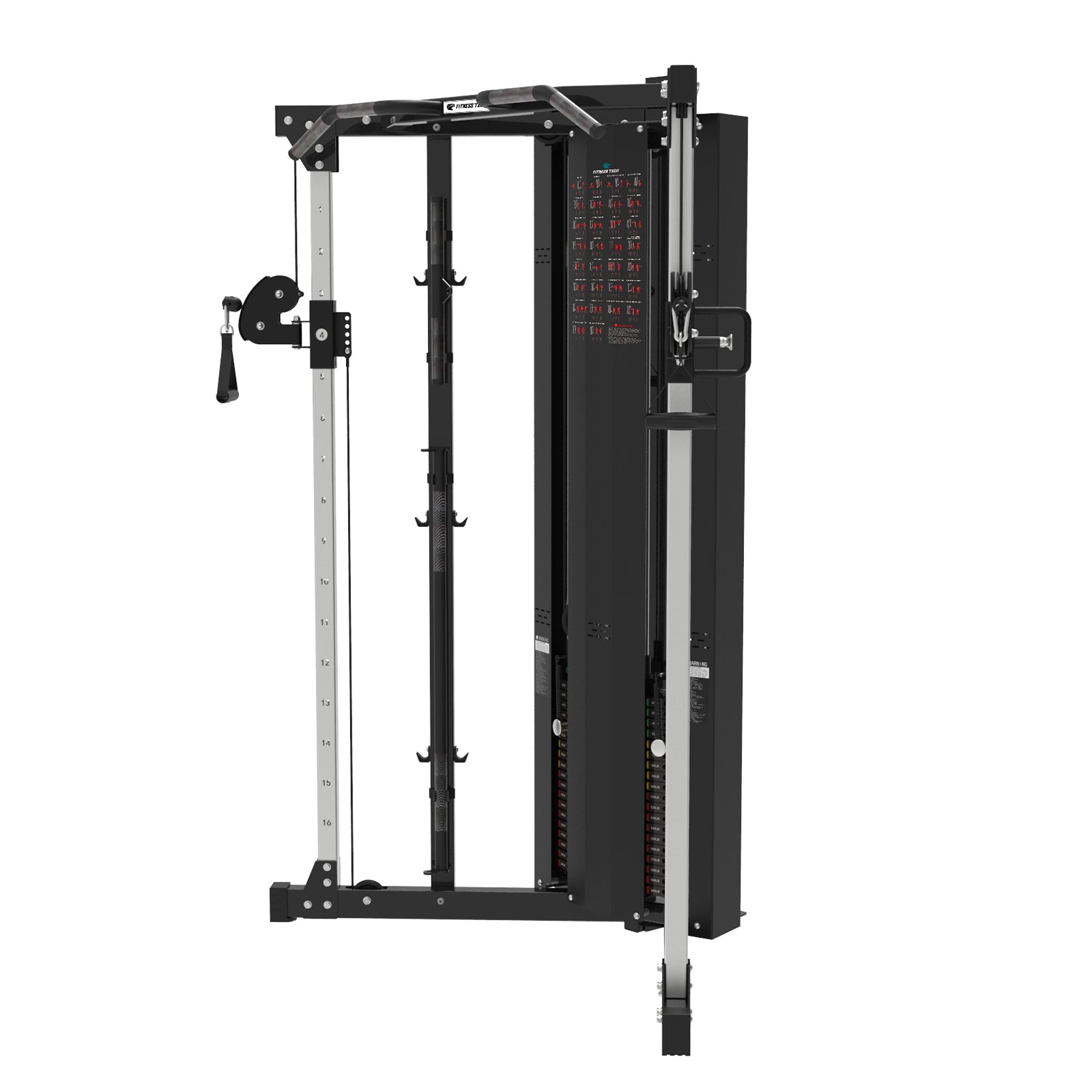 Equipada con dos columnas de placas de 90 kg cada una y un sistema de poleas múltiples con roldanas Ø120 mm, ofrece un movimiento fluido y resistente, pensado para soportar sesiones intensas de entrenamiento. Permite trabajar de forma unilateral o bilateral, adaptándose a distintos niveles y objetivos. Incluye una amplia variedad de accesorios que amplían las posibilidades de trabajo y convierten esta máquina en una estación completa de fuerza.