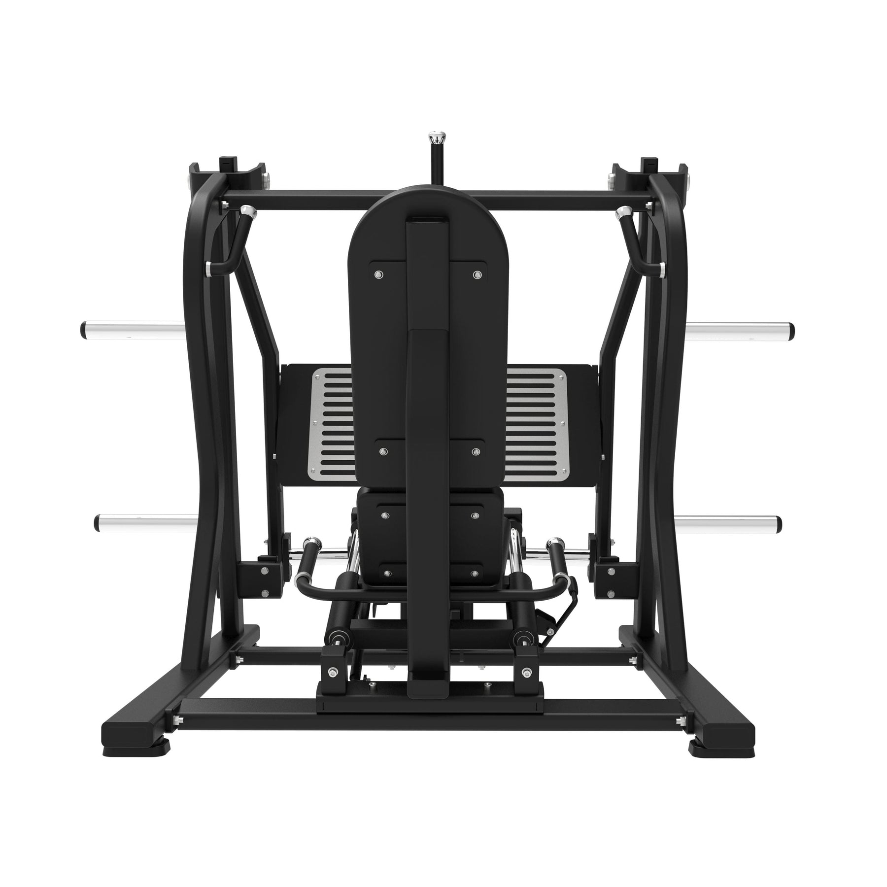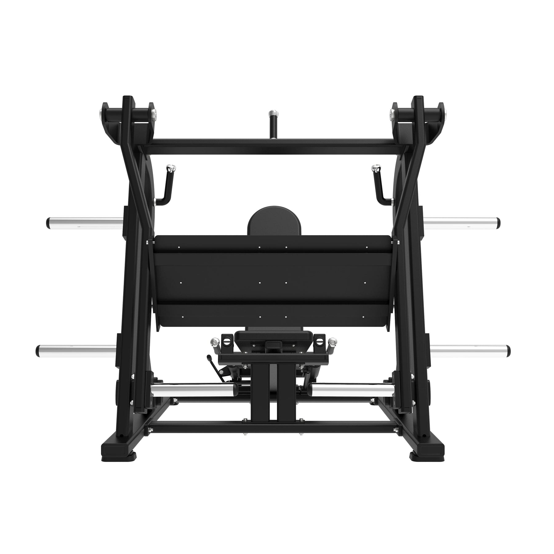 Equipada con un sistema plate loaded (carga mediante discos), ofrece una capacidad total de 200 kg, adaptándose al nivel de exigencia de cada usuario. Su estructura robusta de acero reforzado y su respaldo ergonómico con tapizado de alta densidad garantizan comodidad, firmeza y una sensación de empuje realista.