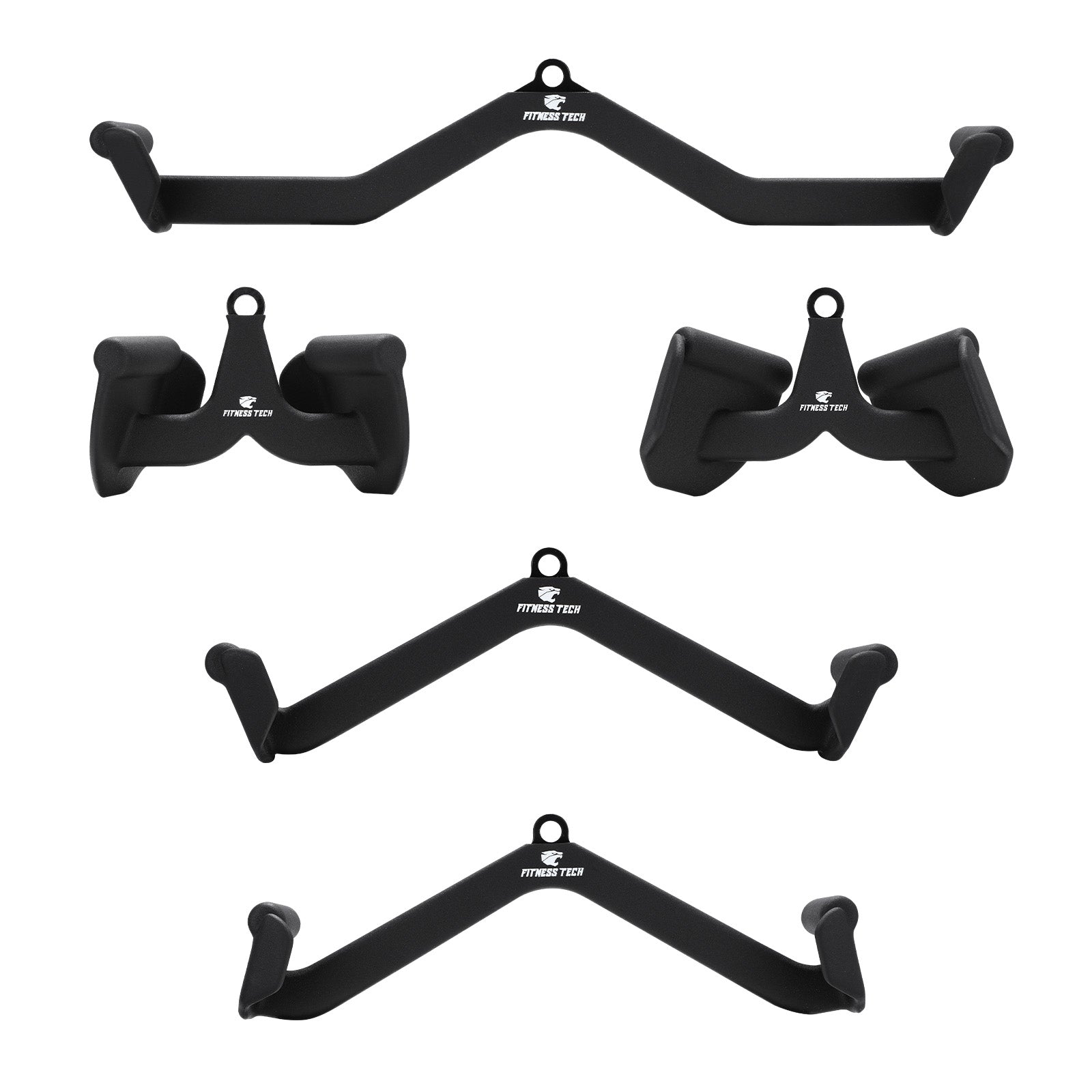 Optimiza tus sesiones de entrenamiento con el set de 5 agarres de Fitness Tech, diseñado para potenciar la activación muscular y mejorar la ejecución de tus ejercicios en máquina de poleas. Este conjunto incluye agarres de diferentes longitudes y posiciones, permitiéndote trabajar con mayor precisión distintos grupos musculares y añadir variedad a tus rutinas de fuerza.